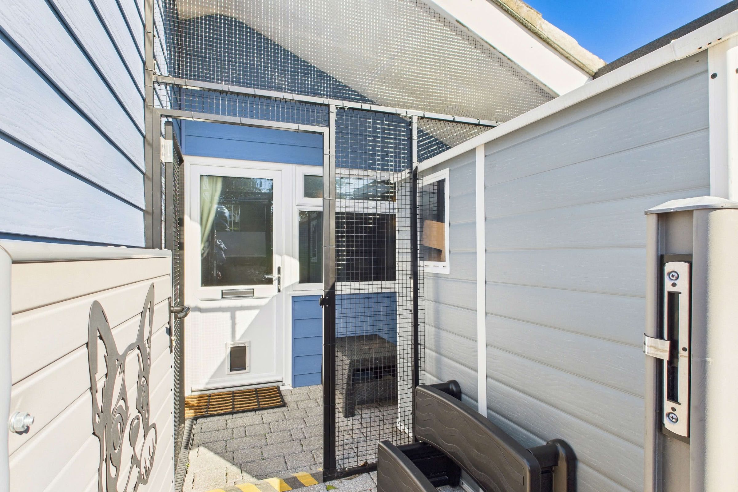 The property is approached via a recently installed driveway (2025), laid with commercial-grade non-slip concrete pavers, chosen for both their durability and smart appearance. A soakaway has been incorporated beneath the driveway, providing effective and sustainable drainage. Prior to the new driveway being laid, an upgraded water main supply pipe was installed, replacing the original pipework to ensure a reliable supply and prevent future issues. To the side, a thoughtfully designed pathway, also finished with matching pavers, offers step-free access with a gentle gradient. Stainless steel balustrading on all sides enhances safety and ensures suitability for wheelchair users and those with reduced mobility. In addition, there is the option of stepped access directly from the driveway.