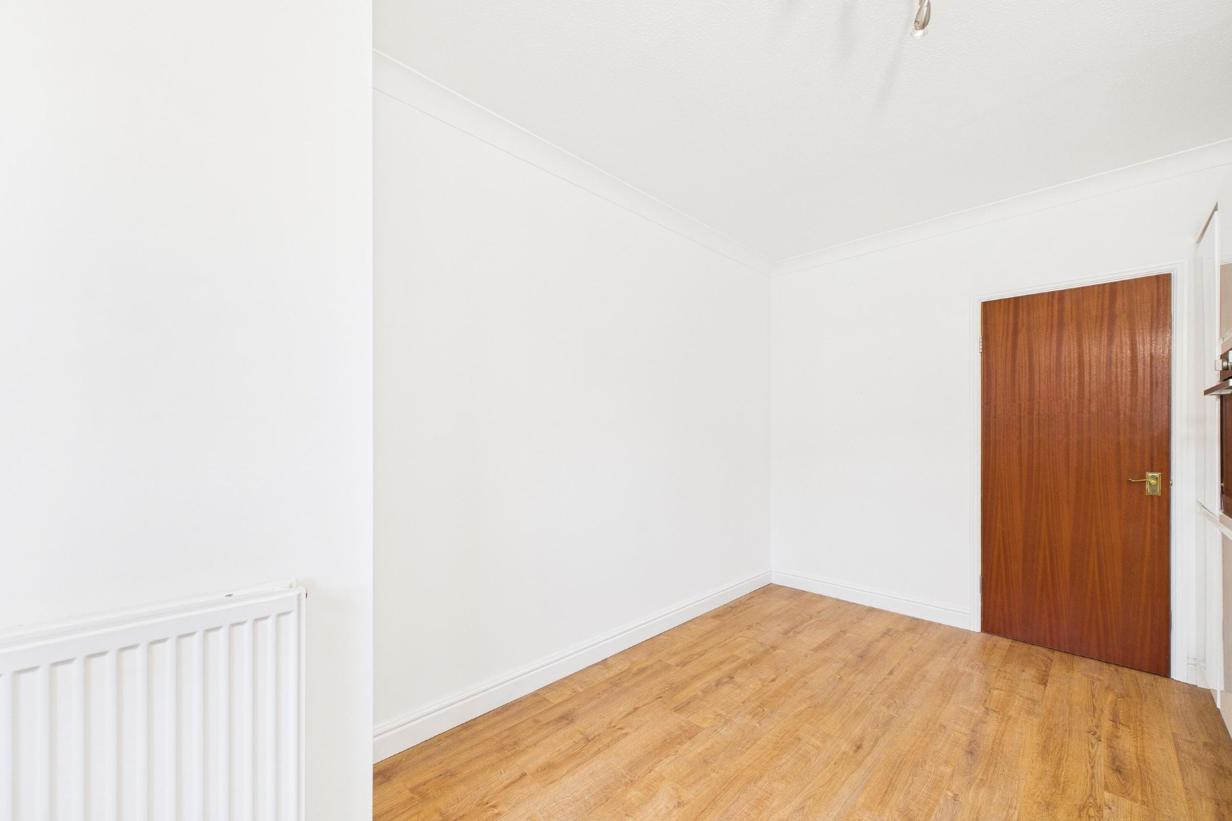 Approaching from the allocated parking area at Edgemont House, a secure communal entrance opens into a well-maintained shared hallway. A short flight of stairs leads to the private entrance to the apartment. Upon entering the property, a generously proportioned hallway provides access to all the principal rooms. The hallway also features a hatch to the loft space providing additional storage potential. This welcoming space benefits from an obscured double-glazed window allowing natural light to filter through, a wall-mounted telephone intercom system for visitor access, a central heating radiator, and a neatly housed consumer unit.