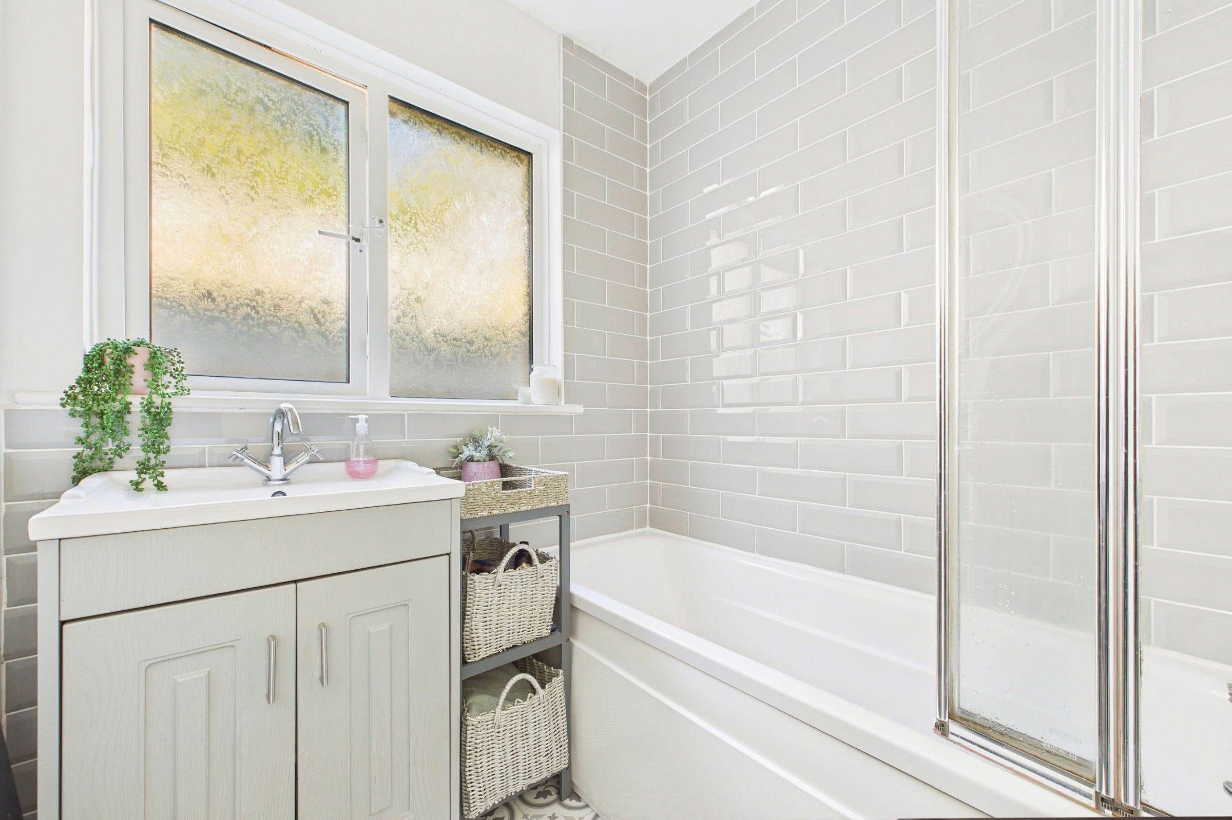 The property benefits from a contemporary bathroom complemented by a separate WC. The bathroom is fitted with a bath tub with rain shower over and an additional handheld shower attachment. It also has a vanity unit incorporating a wash basin with storage beneath. Further features include a wall-mounted heated towel rail, part-tiled walls and an obscured double-glazed window to the rear aspect. The separate WC is well presented and comprises a low level WC, vinyl flooring and an obscured double glazed window to the rear.