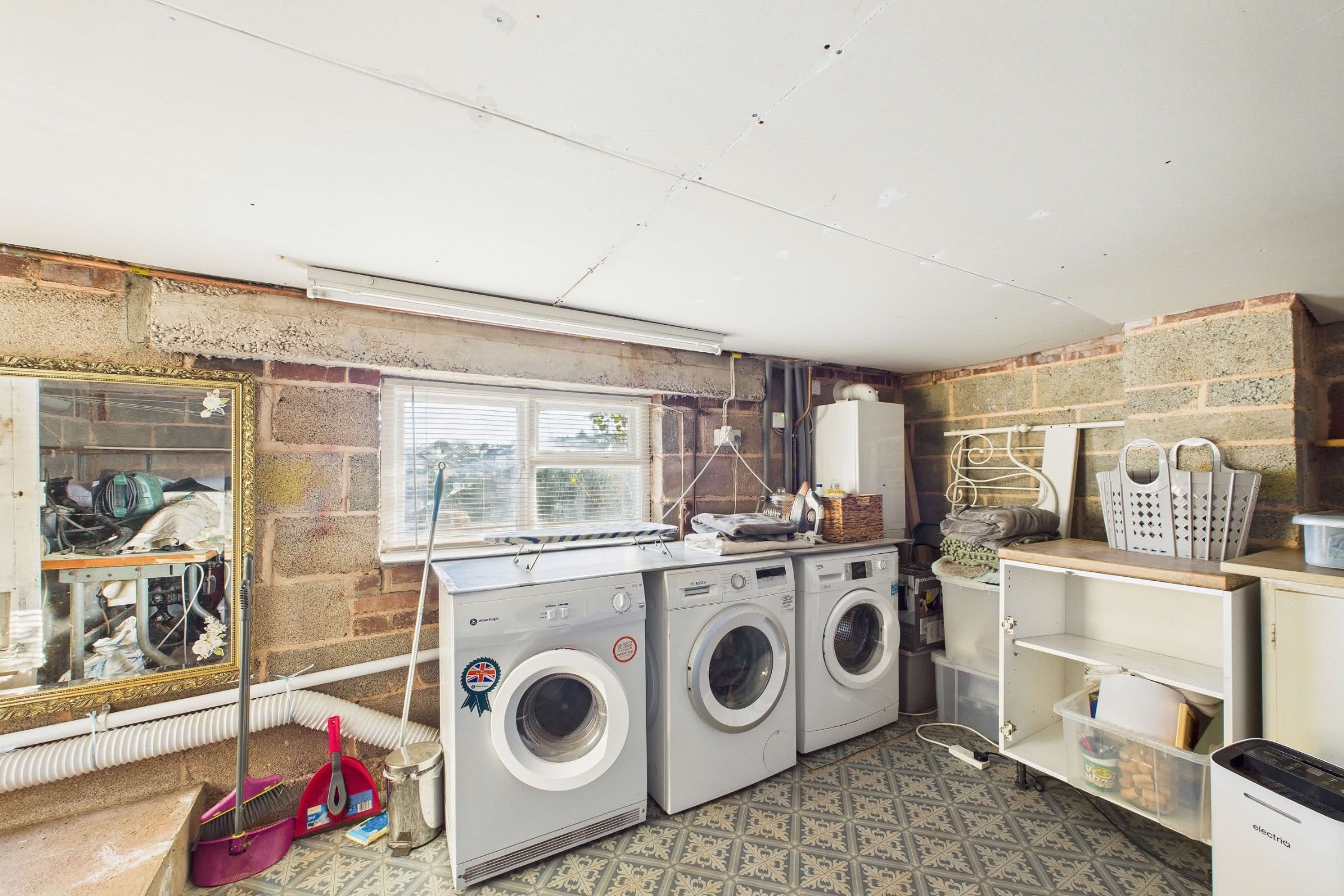 Offered to the market with no onward chain, this well-presented two bedroom semi-detached bungalow is quietly situated in a desirable cul-de-sac. The property enjoys driveway parking for two vehicles in addition to a garage, and further benefits from a large utility area located beneath the house, providing excellent practical storage and workspace. To the rear is a generously sized garden with a sunny aspect, ideal for outdoor relaxation and entertaining.