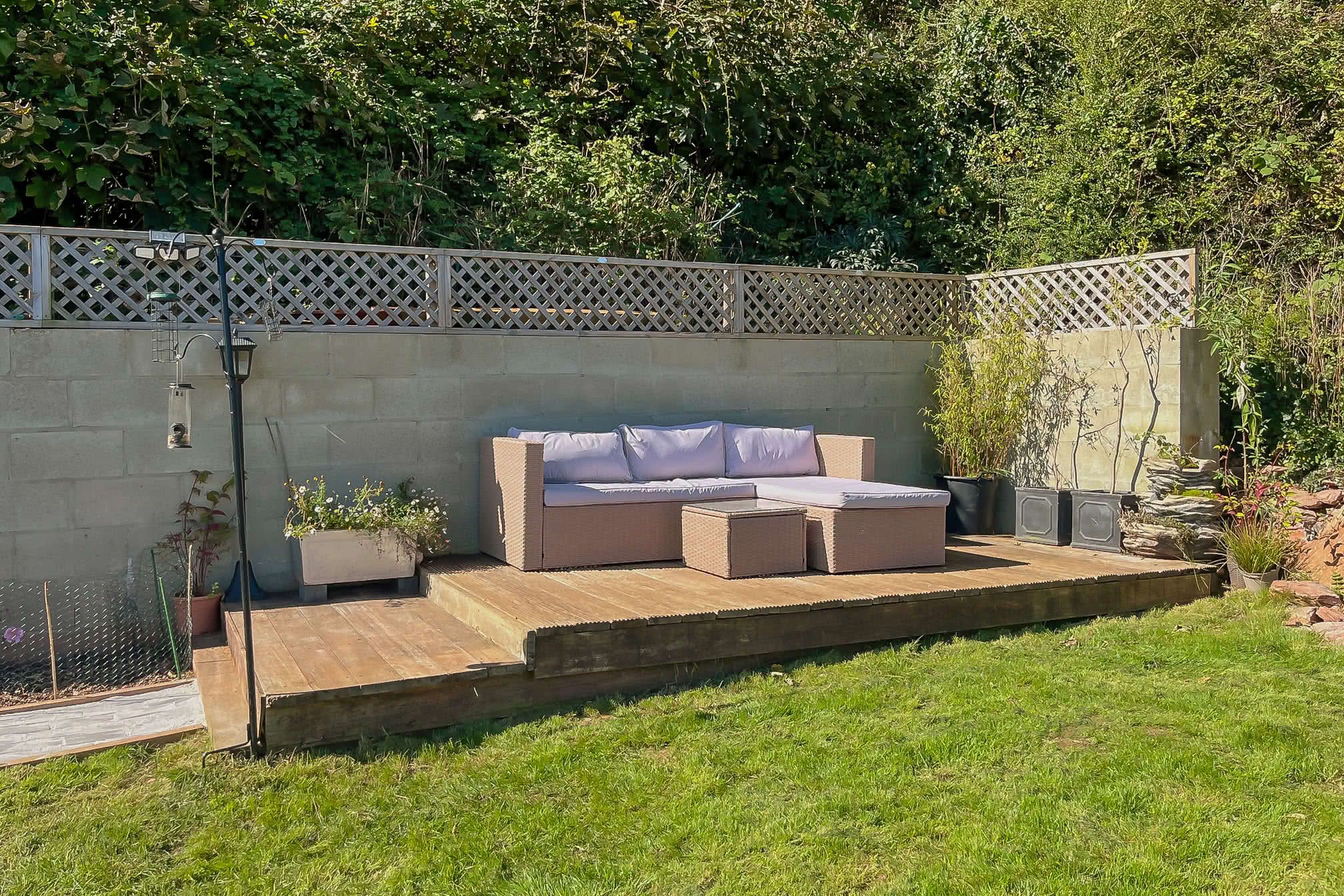 The property boasts a lovely multi-level rear garden thoughtfully arranged to create a variety of outdoor spaces. The lower level has been recently paved to provide a peaceful seating and dining area, ideal for entertaining or simply relaxing. Raised planters and established borders add colour and interest, while steps lead up to a landscaped upper tier laid to lawn, offering an excellent space for recreation. This combination of usable areas and natural surroundings creates a tranquil, private environment and enhances the overall enjoyment of the outside space.