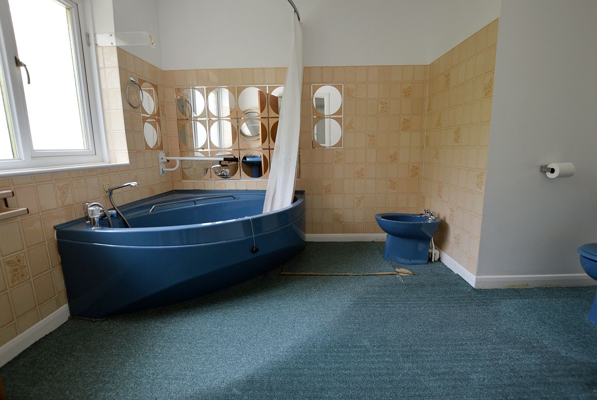 Corner bath with mixer tap and shower attachment. Pedestal wash basin. Low level W.C. Bidet. Part tiled walls. 2 x Radiators. UPVC obscure glazed window to rear.