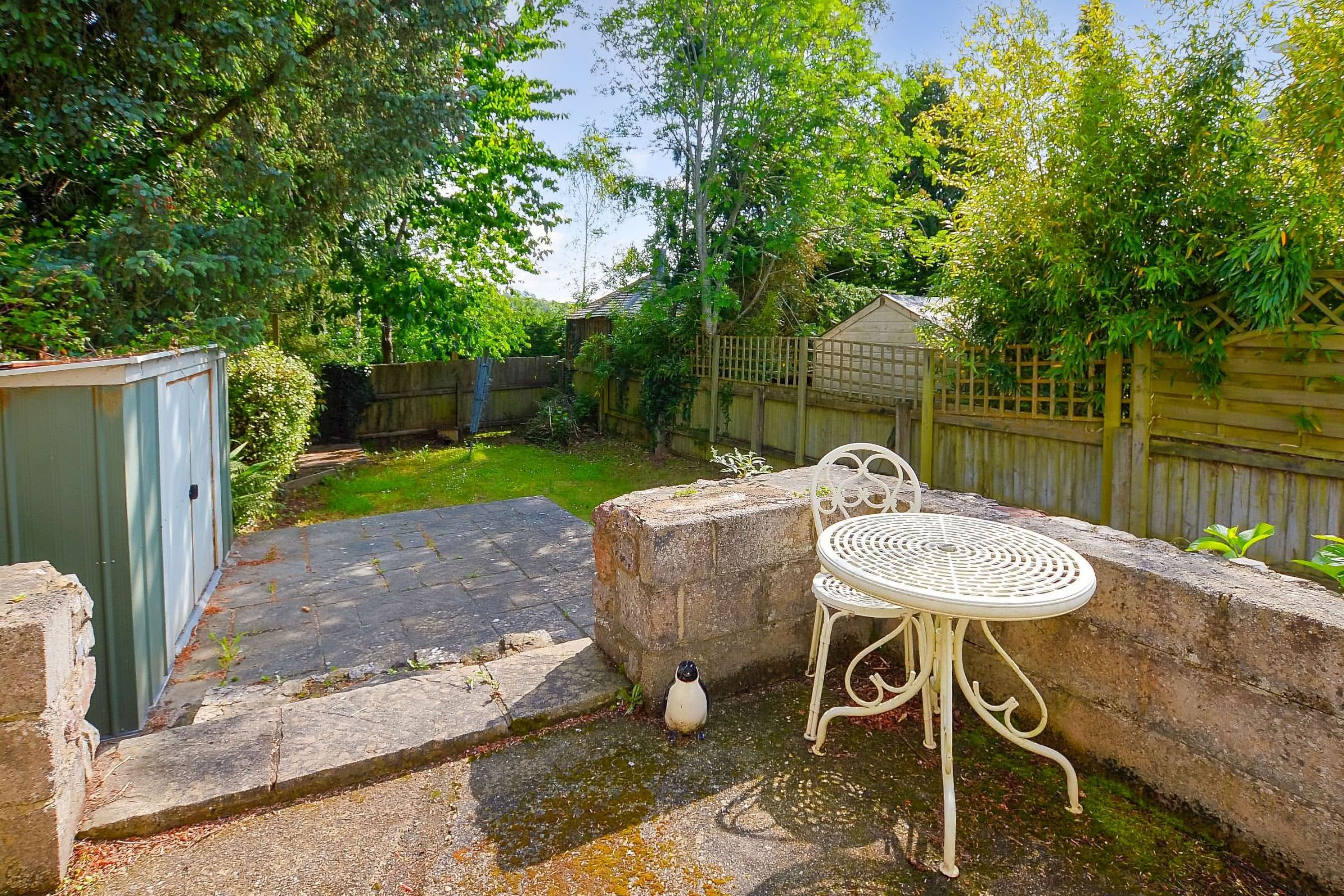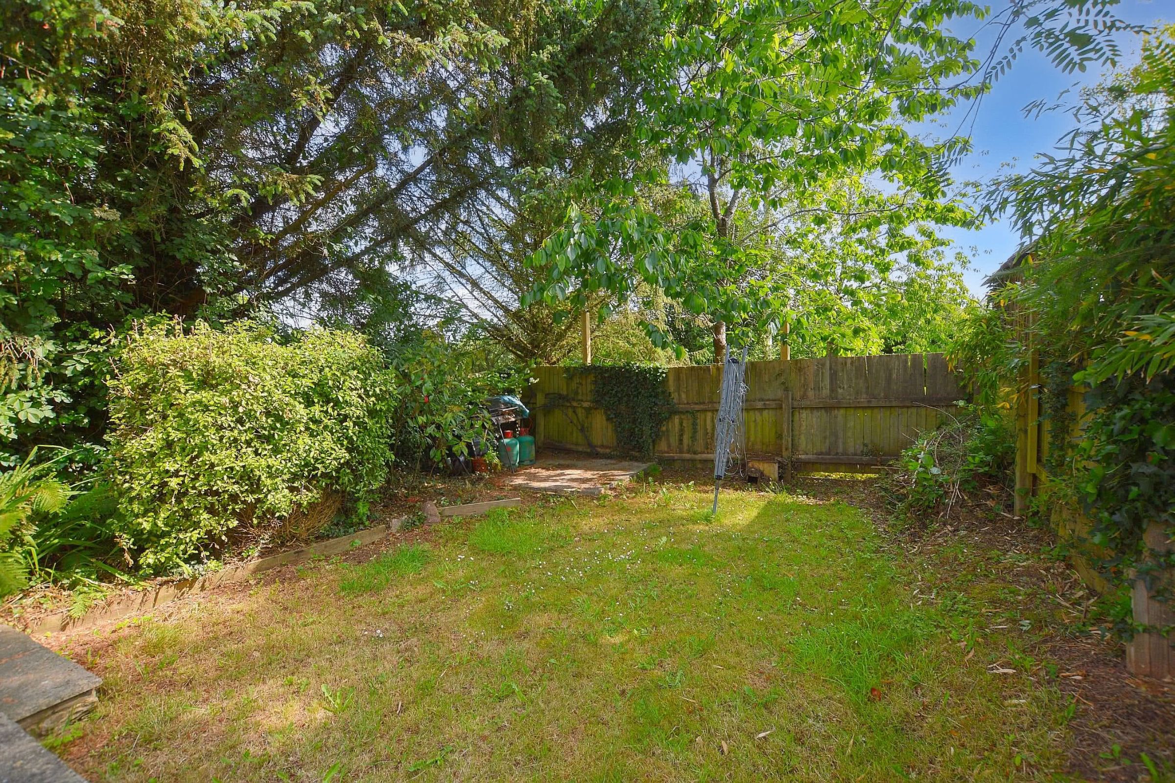 To the front, the garden is level and predominantly laid to flagstone-style patio with space for bin storage. This continues to a good-sized, level enclosed garden, mainly laid to lawn with established shrub borders. A paved hardstanding provides an ideal spot for a barbecue area, while a raised flagstone patio leads onto a further terrace enclosed by low stone walling, offering additional space for outdoor seating. External water tap.