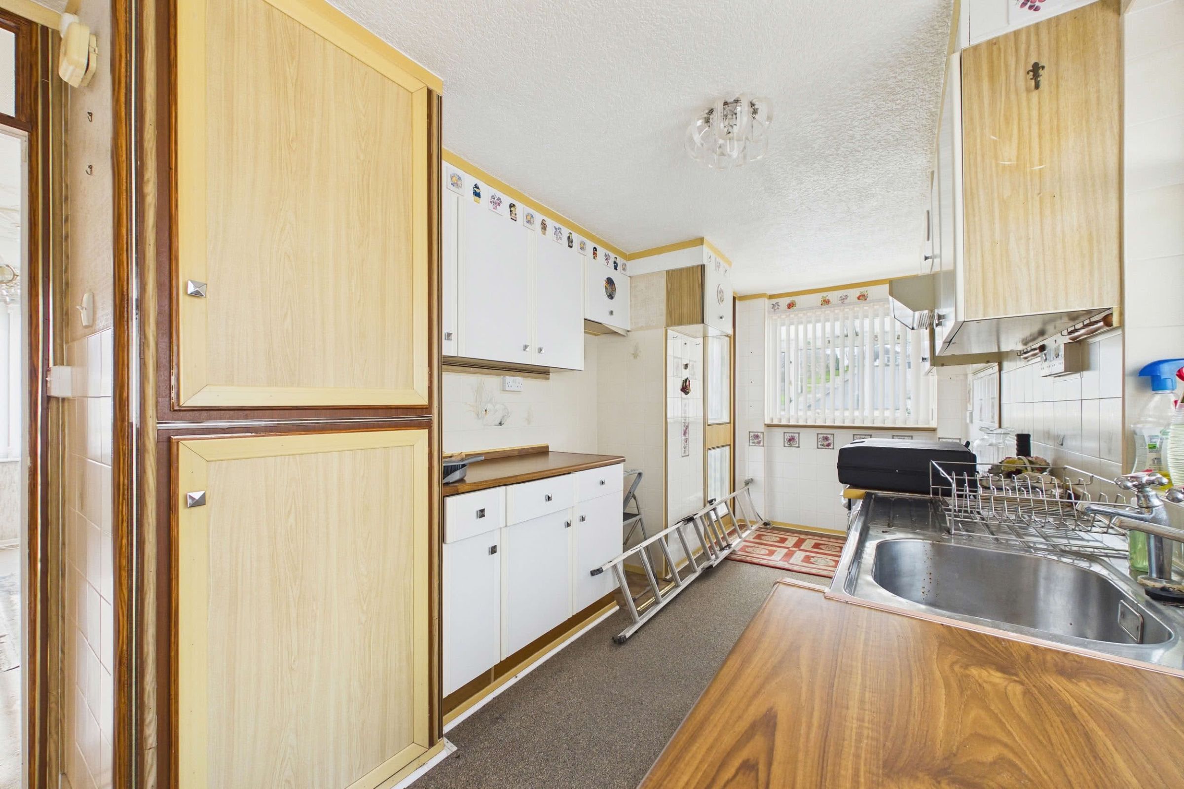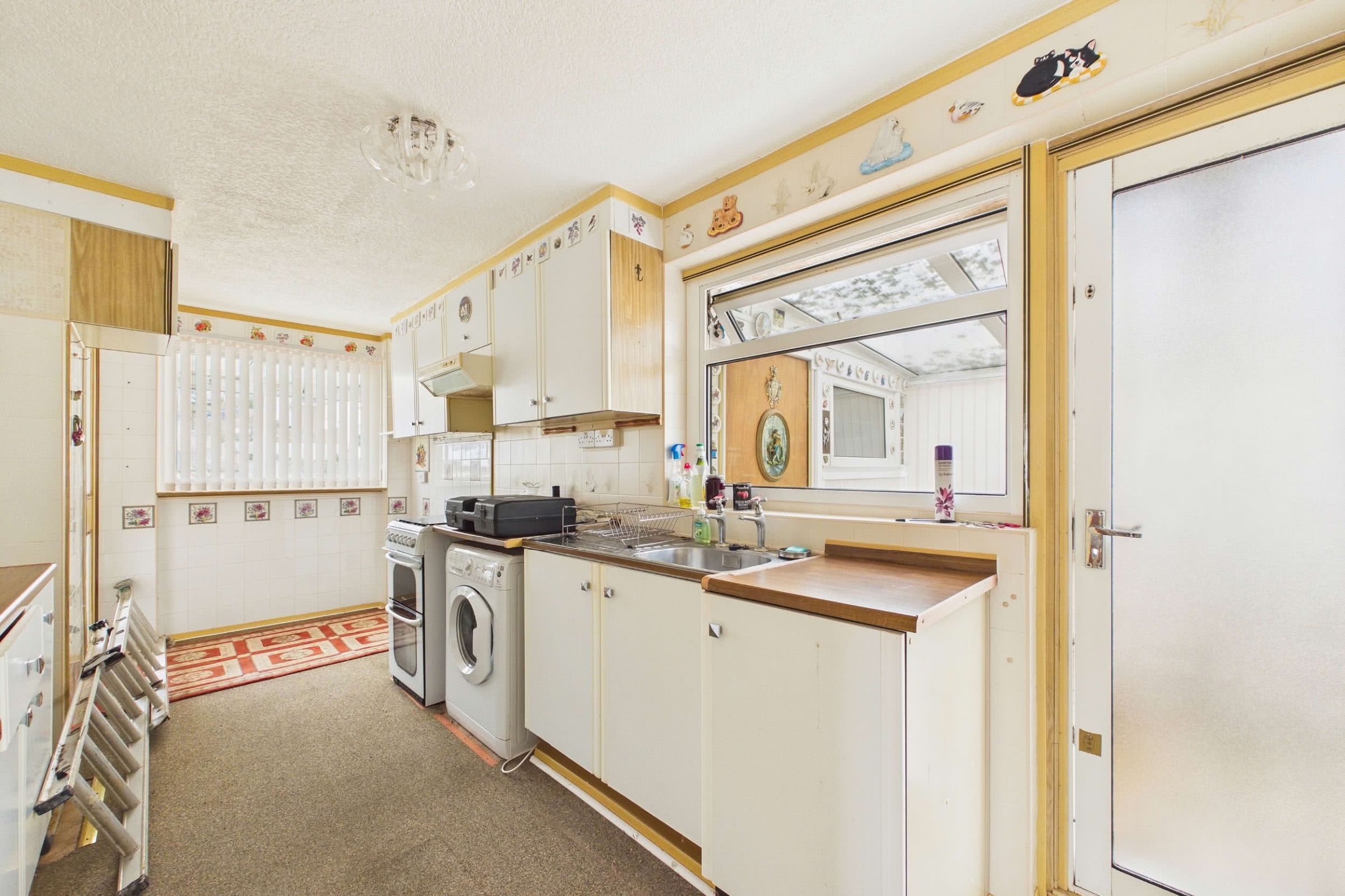 To the front, the bungalow is approached via a driveway providing off-road parking and access to the integral garage. Internally, a generously sized sunroom porch creates a welcoming entrance and leads to a bright, spacious living room. The galley-style kitchen offers a range of wall and base units and flows into the conservatory, which enjoys views over the rear garden and provides a pleasant additional reception space. The conservatory also benefits from a courtesy door to the integral garage, adding to day-to-day practicality.