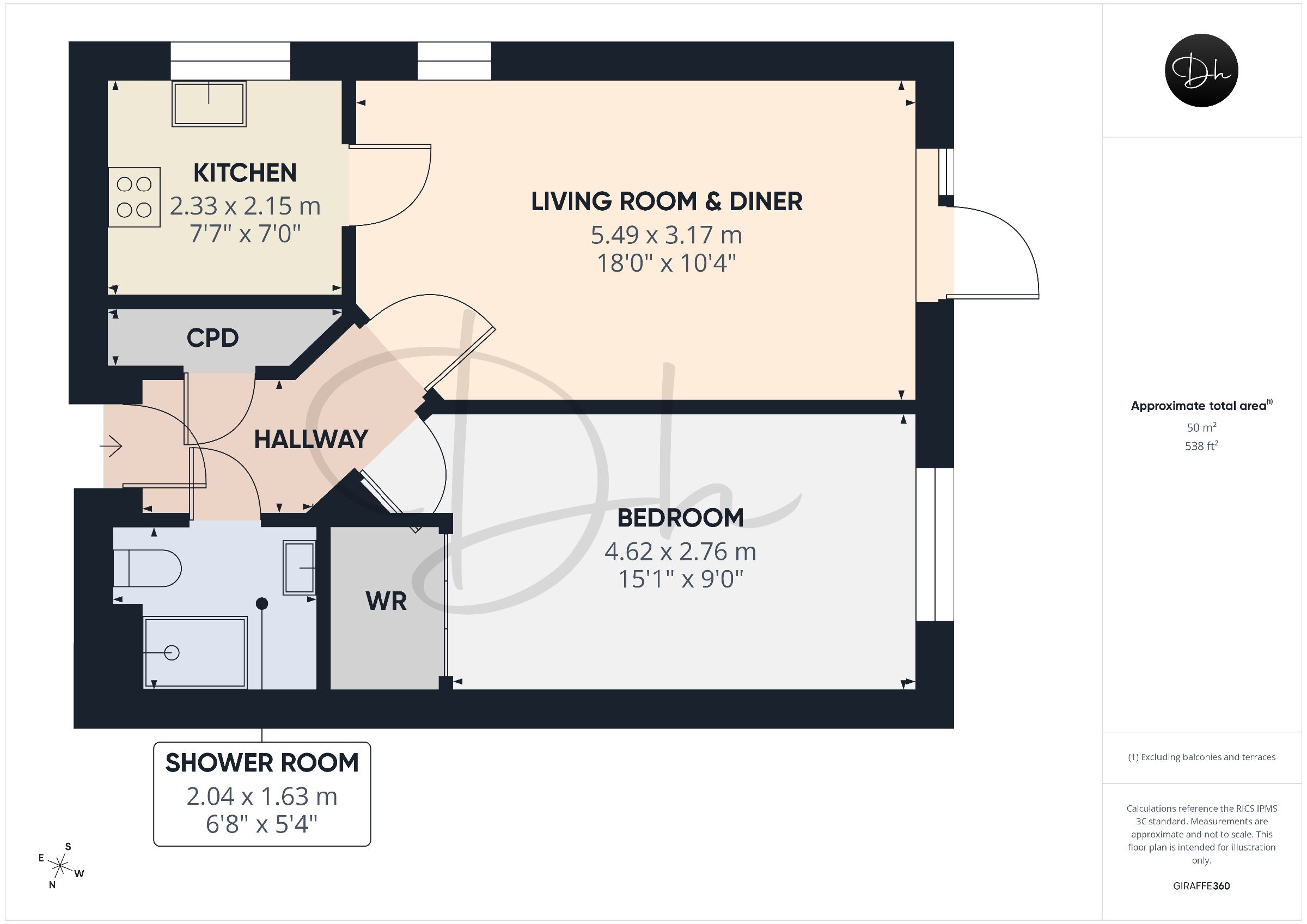Available Leasehold 50 m² / 538 ft² Council tax band: C EPC: B