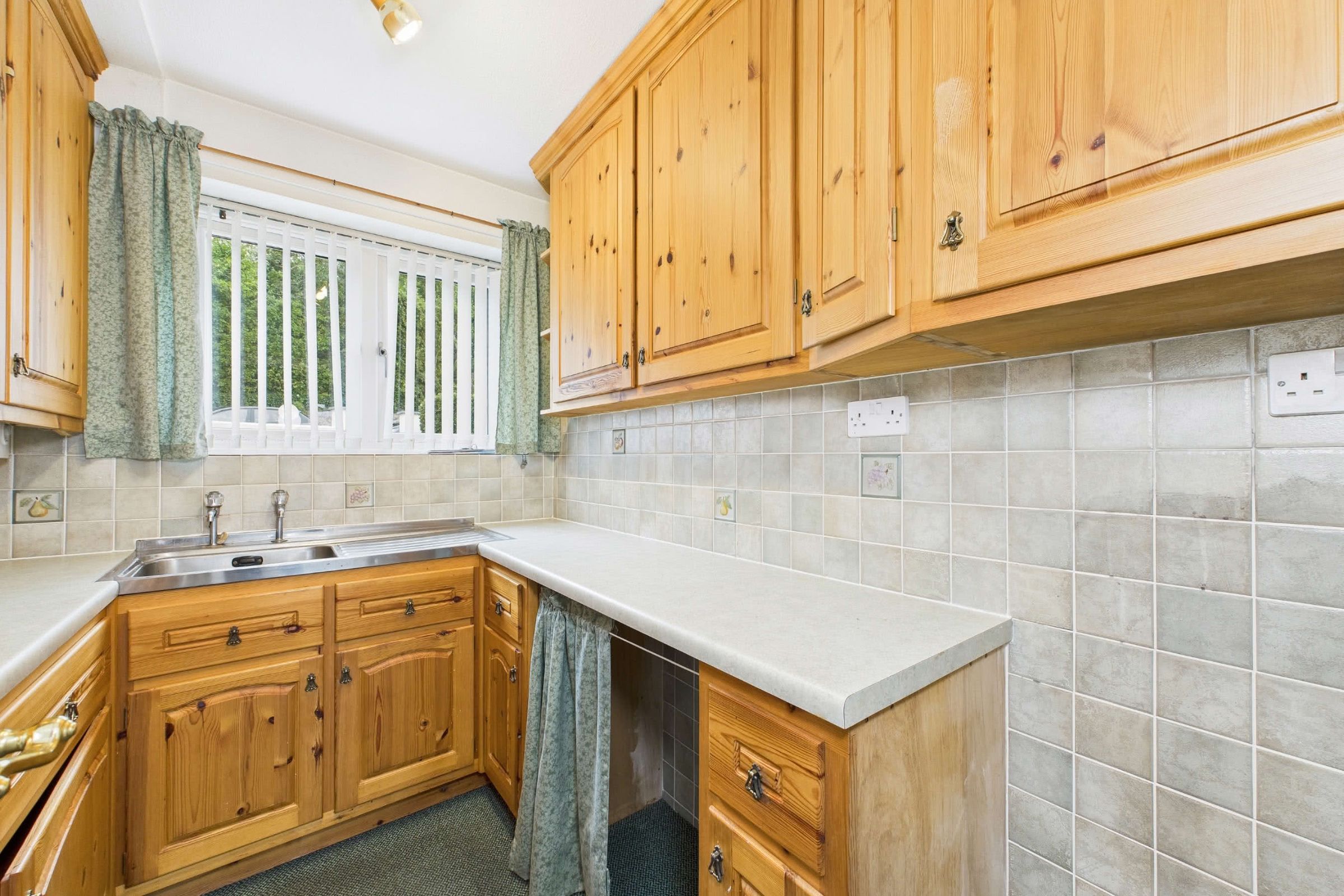 The living room is generous in proportion, providing a comfortable and versatile space. Natural light fills the room through a double-glazed window, enjoying an attractive outlook towards the Warberries hillside. A radiator is conveniently positioned beneath the window for efficient heating. A double-glazed door opens directly onto the property's private balcony, which offers the same lovely elevated views, an ideal spot to enjoy the peaceful surroundings.Kitchen