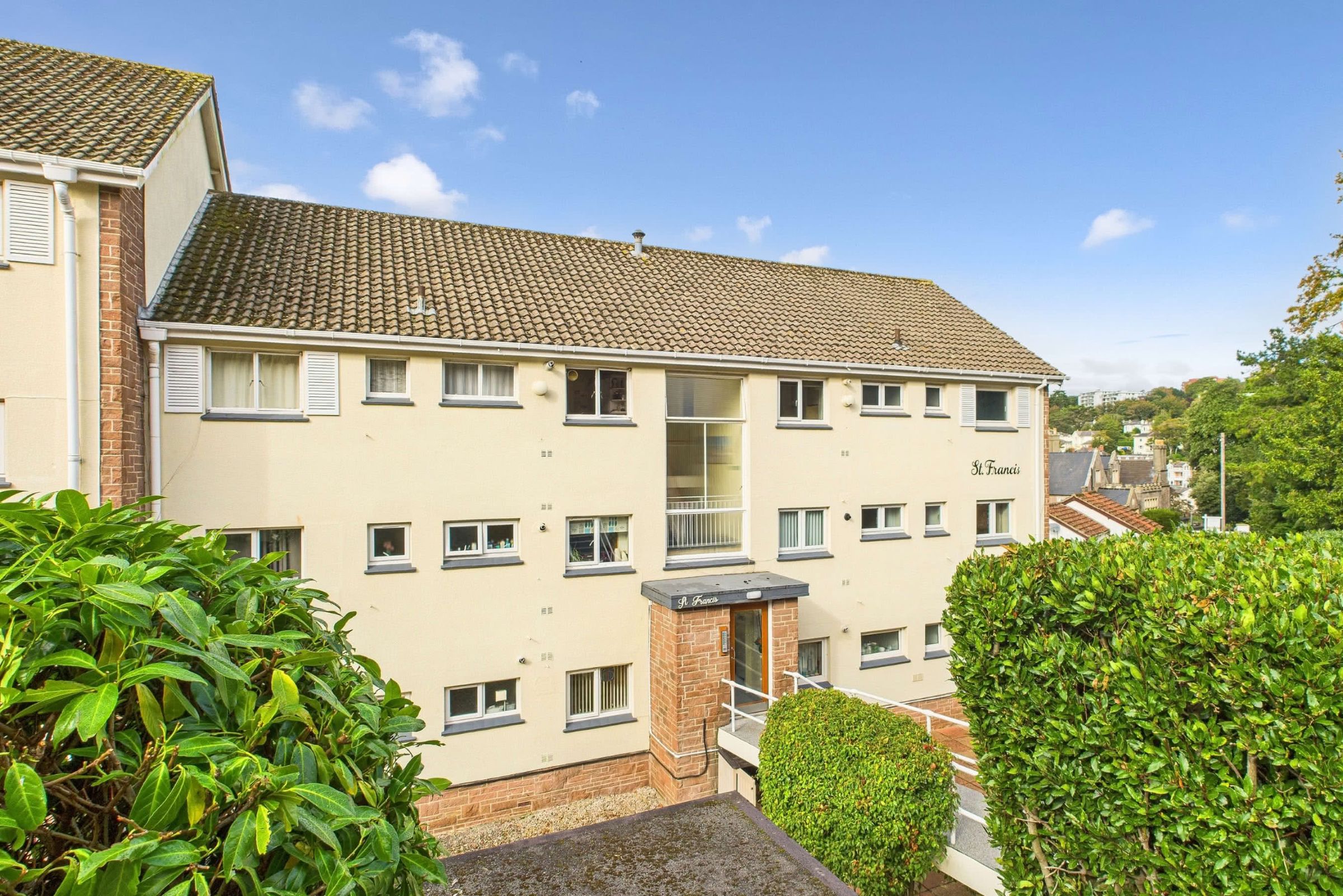 Occupying a desirable position within the well-regarded St Francis development, this spacious two-bedroom first-floor apartment offers well-planned accommodation and pleasant open views across The Warberries hillside and Torwood Gardens below. Forming one of just six apartments within this purpose-built 1970s development, the property benefits from generous storage, a private garage, and parking to the rear.Whilst the apartment would now benefit from modernisation, it represents an excellent opportunity to acquire a home of considerable potential and is offered to the market CHAIN FREE. Residents of St Francis enjoy attractive communal gardens to the front of the building, providing a peaceful setting amidst well-tended surroundings.