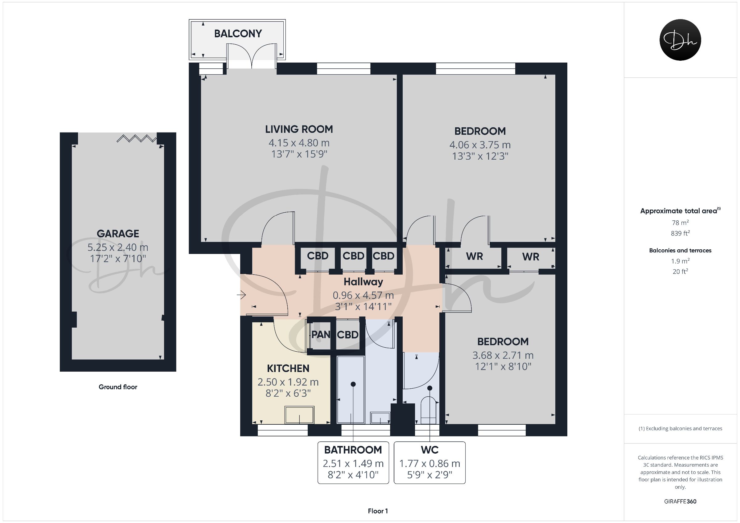 The apartment is complemented by a single garage, with parking available directly in front, providing convenient access. The garage is fitted with lighting, making it practical for vehicle storage and general use.These particulars do not constitute any part of an offer or a contract. All statements contained in these particulars are made without responsibility on the part of Daniel Hobbin Estate Agents Limited. Where every attempt has been made to ensure the accuracy of the floorplan contained here, any areas, measurements or distances are approximate. The text, photographs and plans are for guidance only and are not necessarily comprehensive. It should not be assumed that the property has all necessary planning, building regulations or other consents. Daniel Hobbin Estate Agents Limited have not tested any services, equipment or facilities. Any intending purchaser must satisfy himself/herself by inspection or otherwise as to the correctness of each of the statements contained in these particulars.