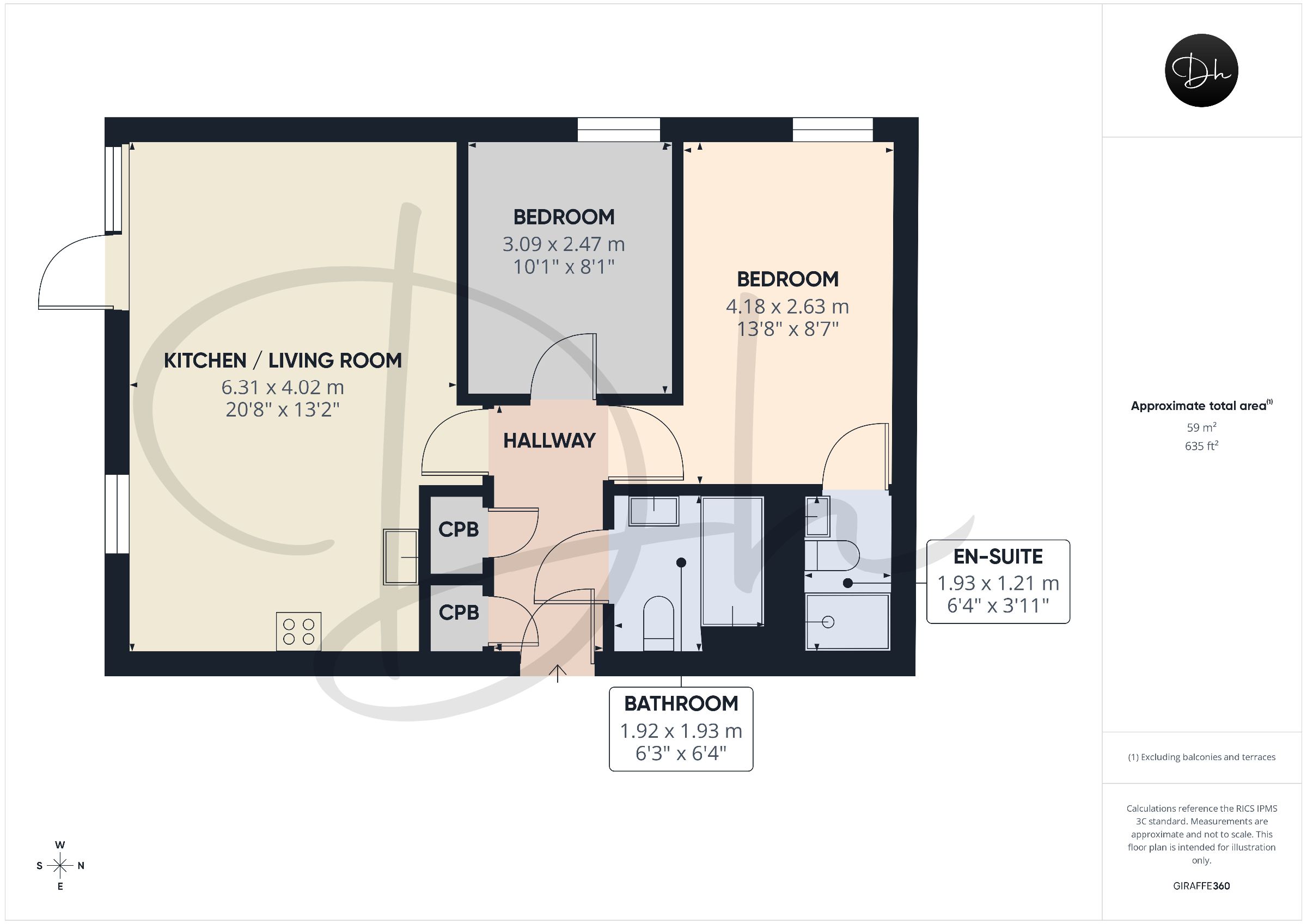 Available Leasehold 59 m² / 635 ft² Council tax band: B EPC: C