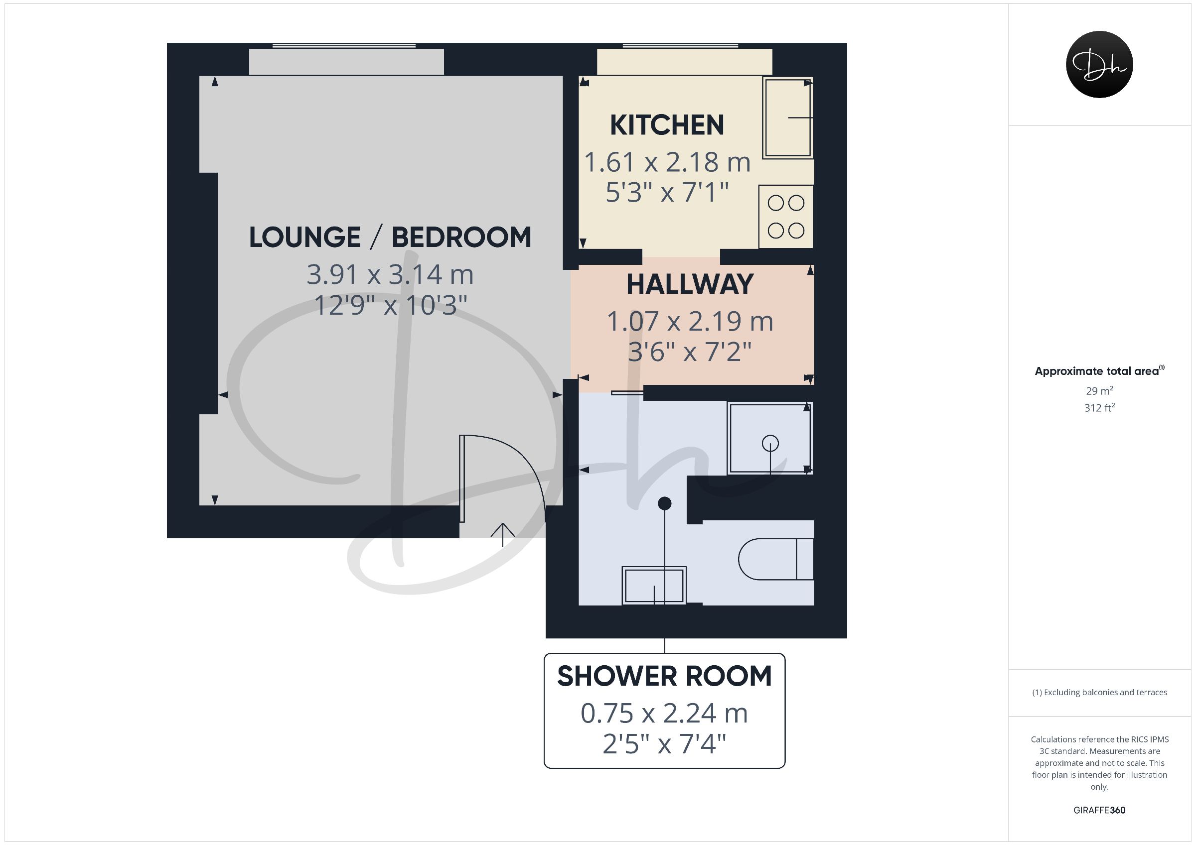 Let 29 m² / 312 ft² Council tax band: A EPC: E
