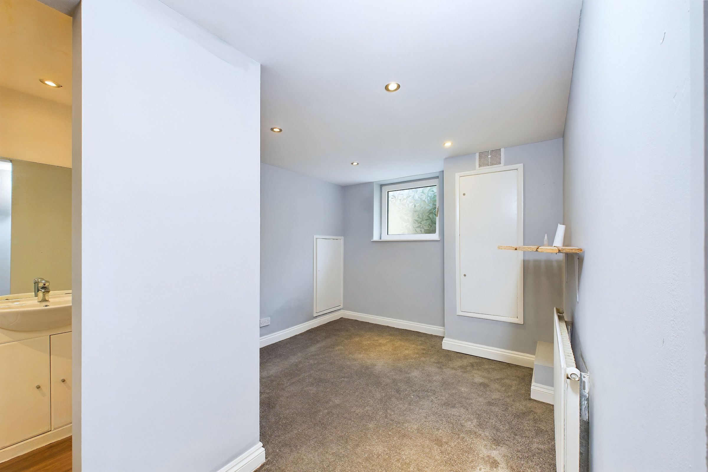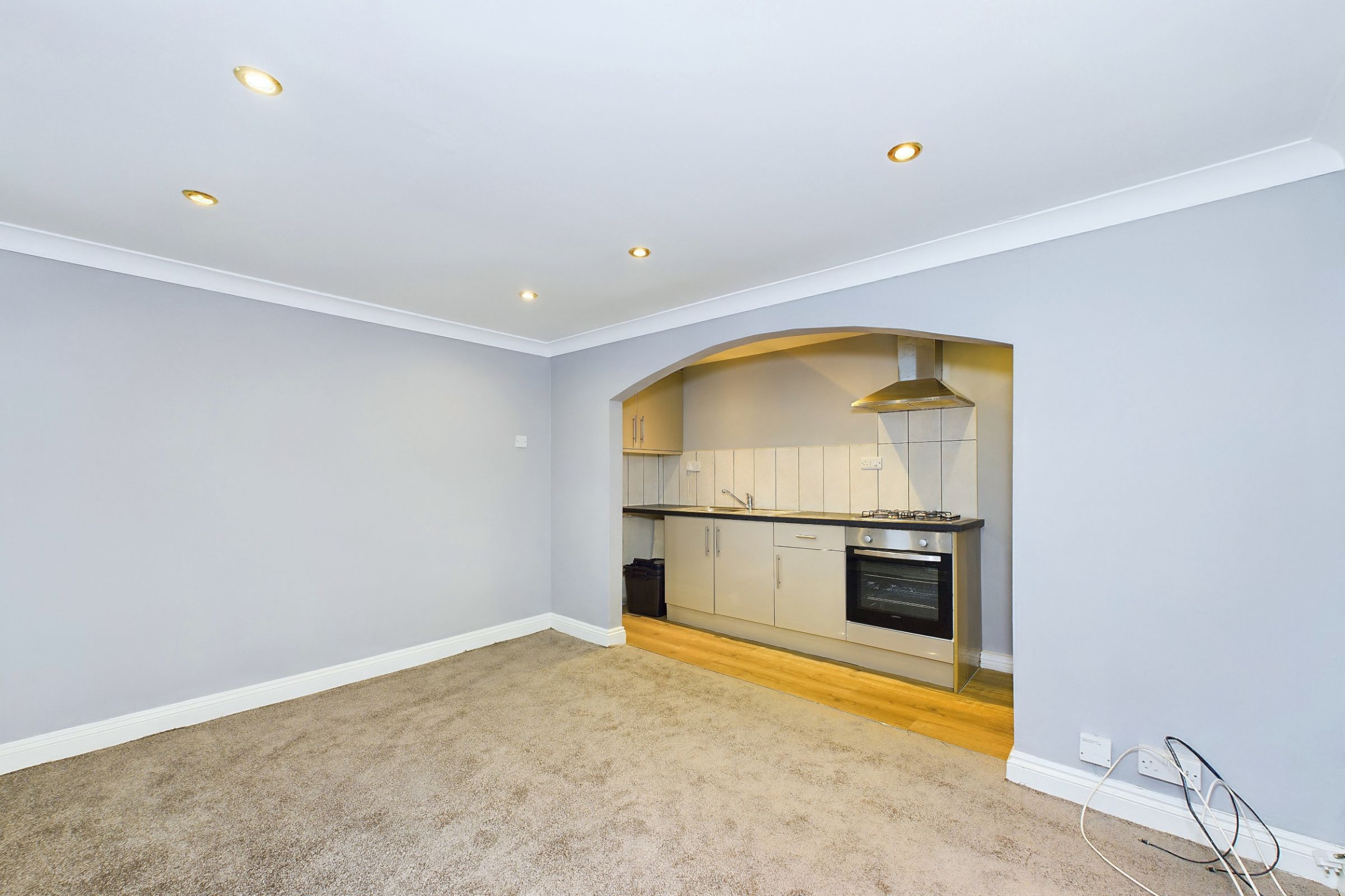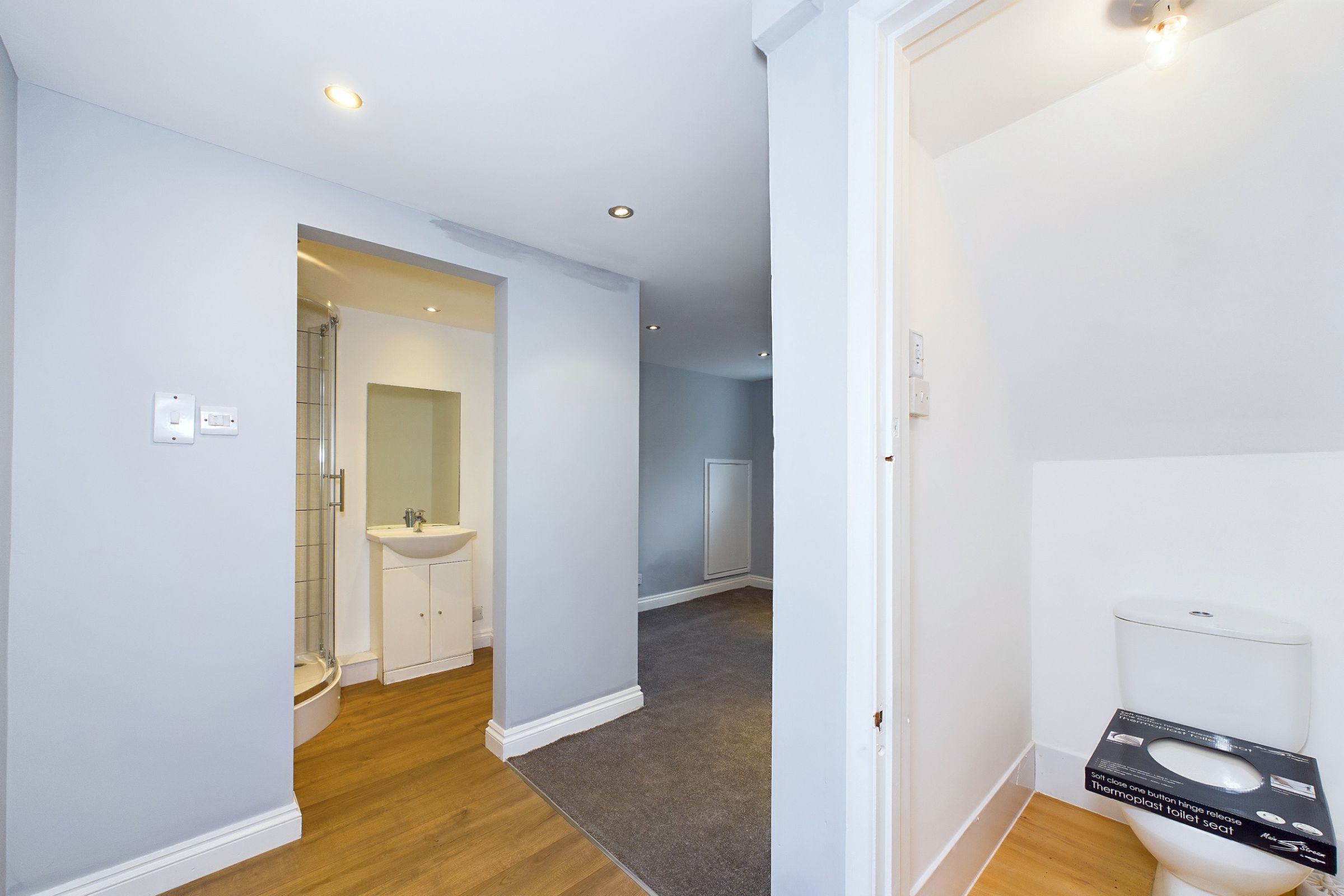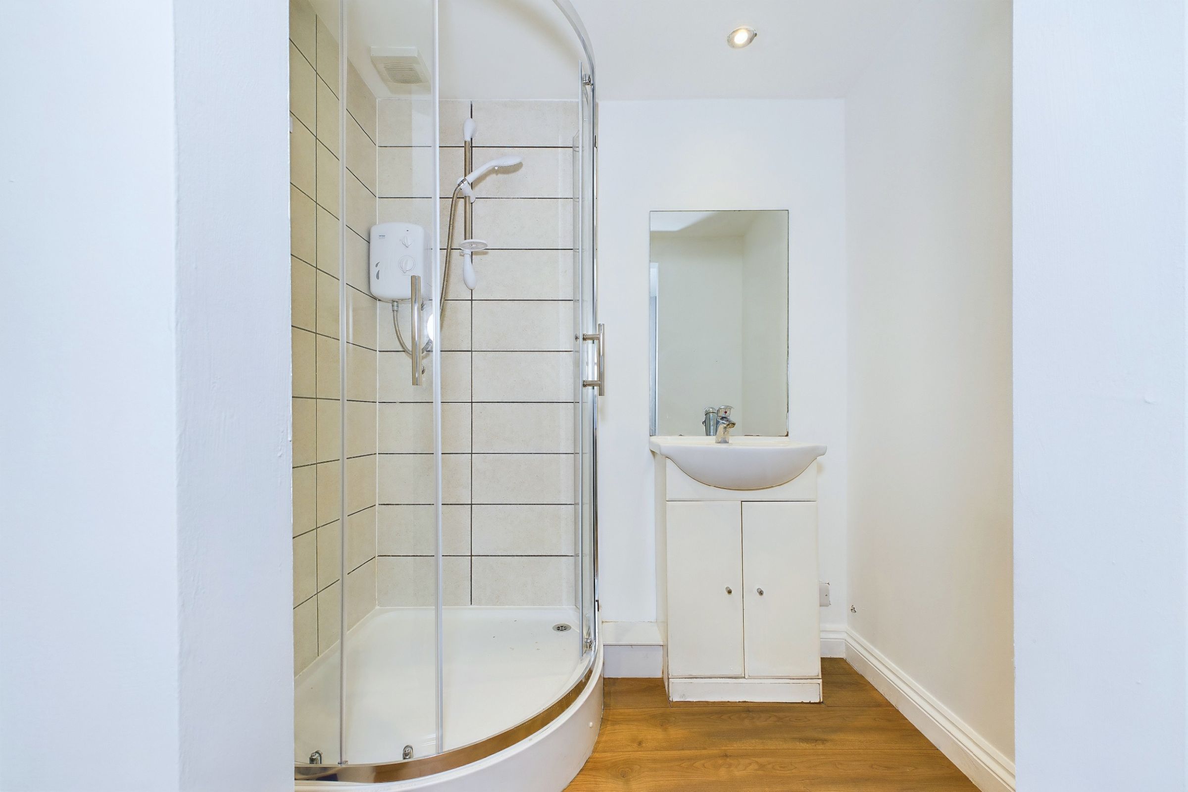 The open plan lounge connects to the kitchen, which includes a built-in oven with a gas hob and an extractor fan. There is space and plumbing for a washing machine as well as room for a freestanding fridge/freezer. The property boasts a contemporary shower room with a corner cubicle and electric shower, a vanity unit, and a separate WC. The bedroom is of a comfortable double size.