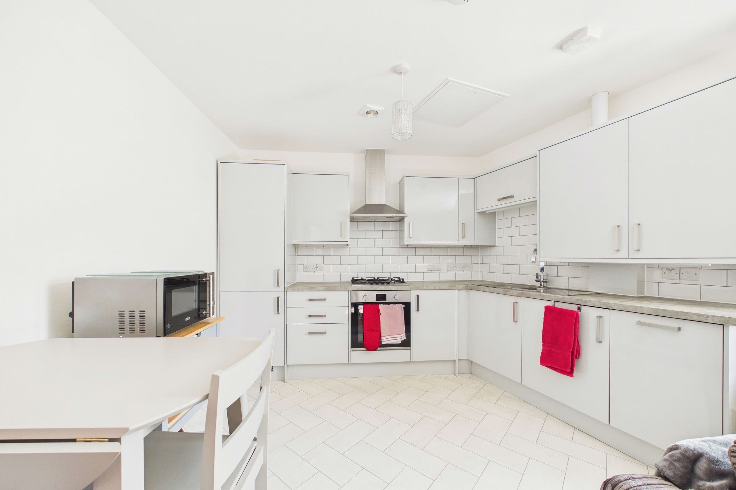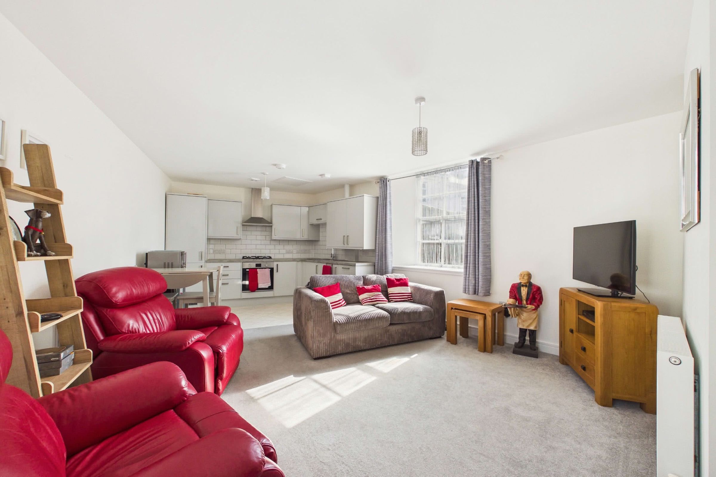 Finished to a high standard throughout, the apartment features modern décor and quality fittings, together with double glazing and gas central heating. At the centre of the home is a spacious open-plan kitchen, dining and living space, designed to provide both practicality and a sociable layout. The kitchen is fitted with a range of integrated appliances, including a fridge/freezer, dishwasher and washer/dryer, while the generous living area offers an ideal setting for both everyday living and entertaining.