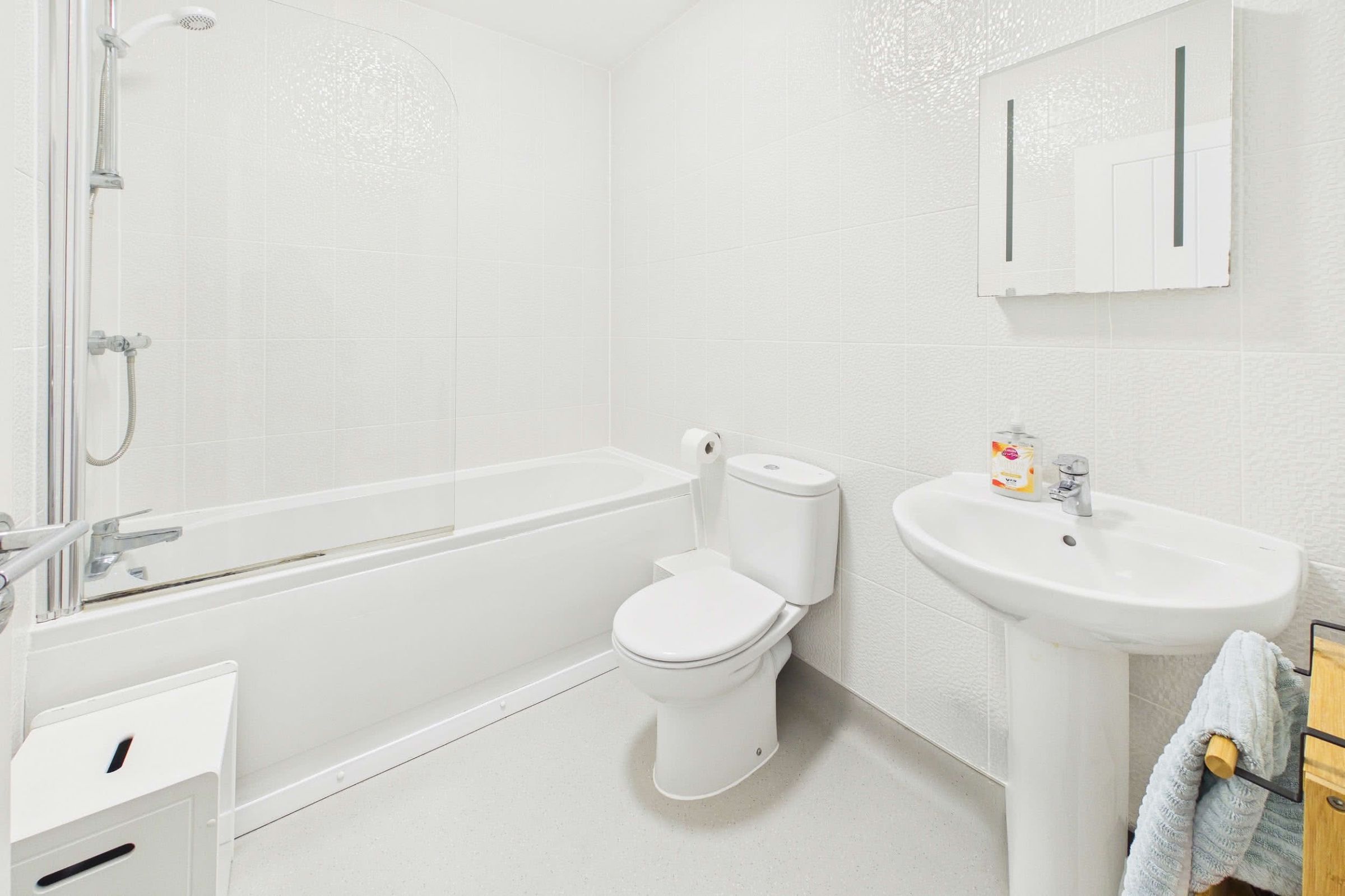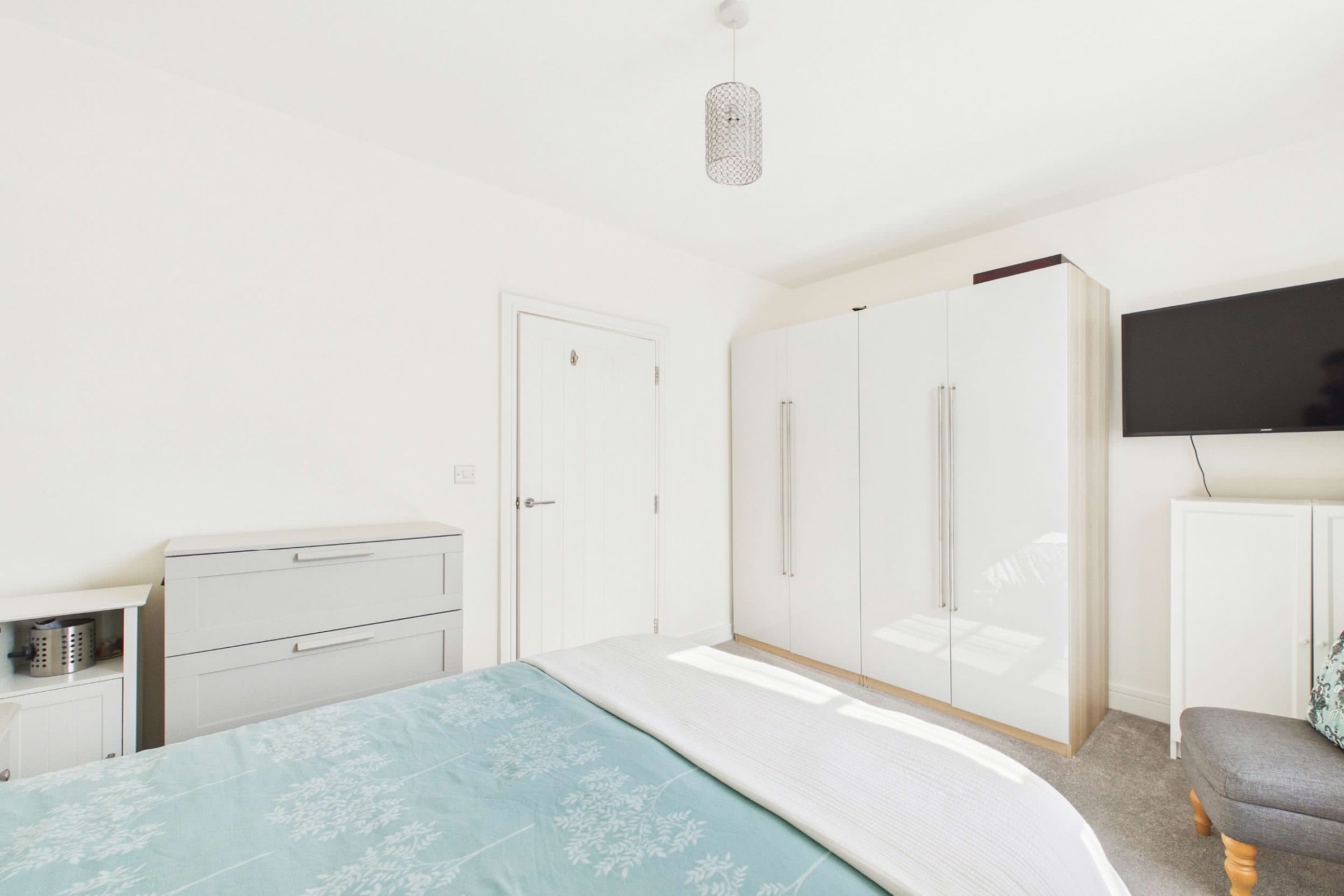 The accommodation further comprises two well-proportioned double bedrooms, with the principal bedroom benefitting from a large walk-in storage cupboard, and a stylish modern bathroom suite. Externally, the property also benefits from an allocated parking space, as shown in the photograph.