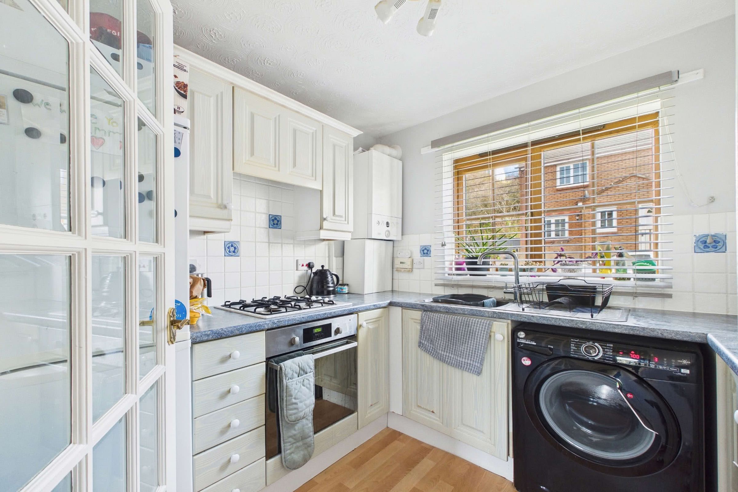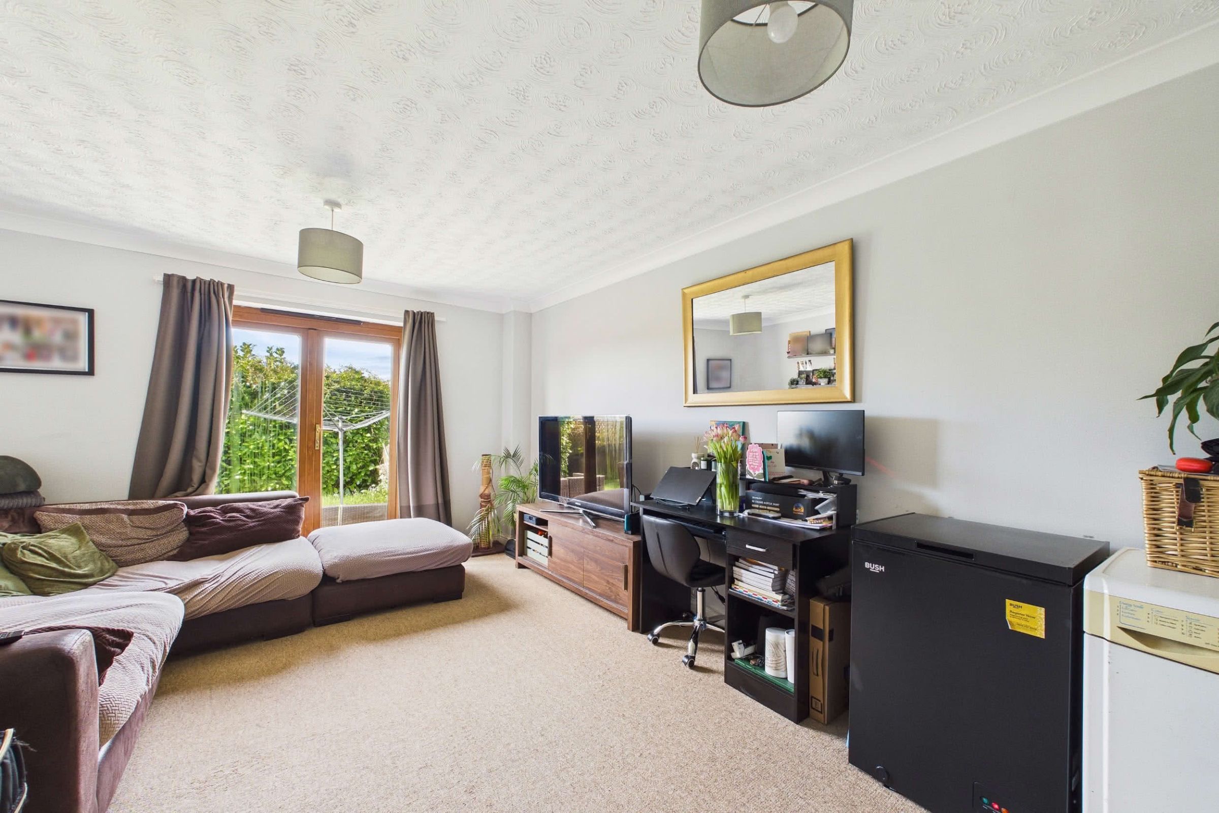 The accommodation comprises a spacious lounge with direct access to the rear garden, creating an ideal living space for relaxing and entertaining. The kitchen is fitted with an integrated oven, inset gas hob with extractor hood over. It also has under-counter space and plumbing for a washing machine and further space for a freestanding fridge/freezer.